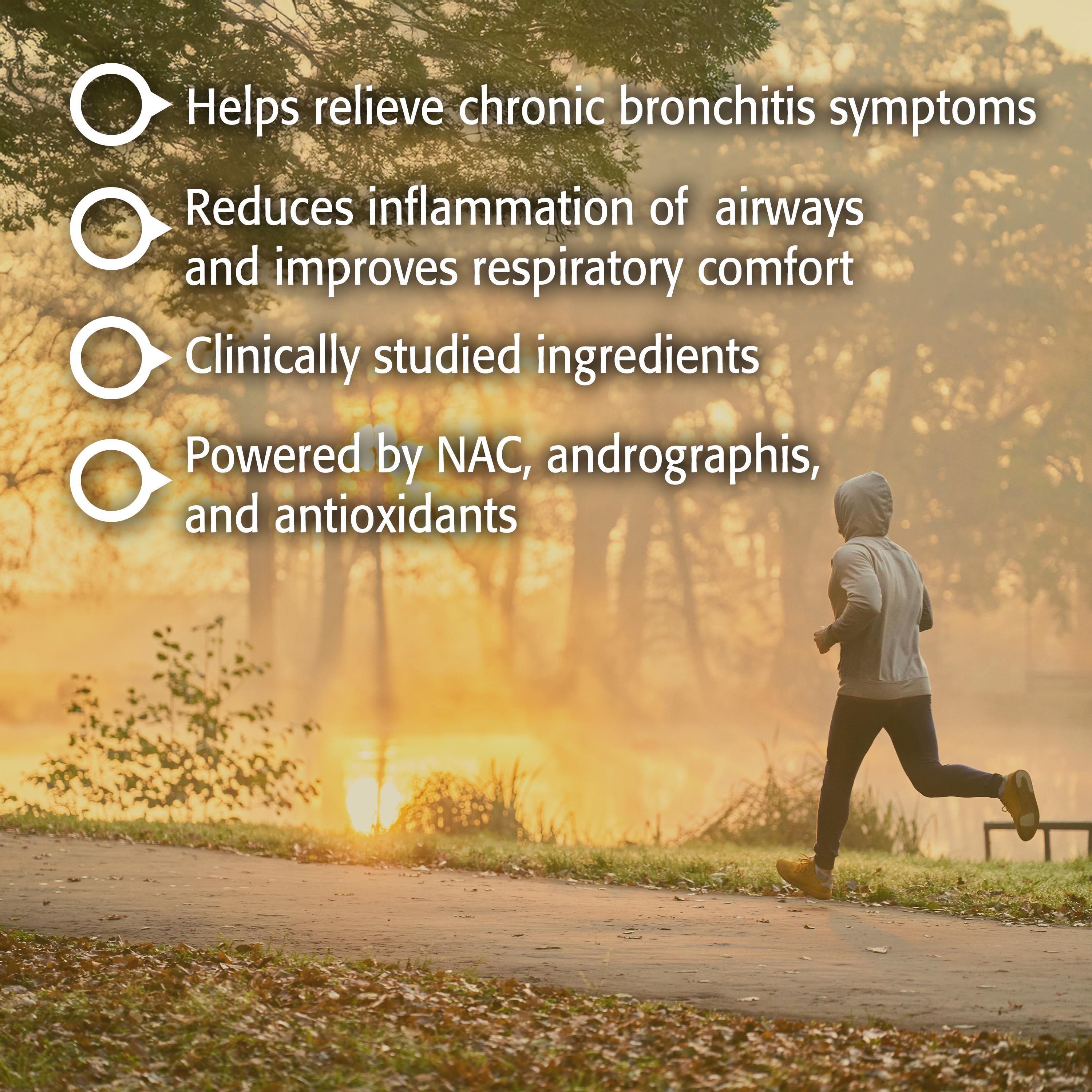 - Includes NAC and andrographis, studied for respiratory health