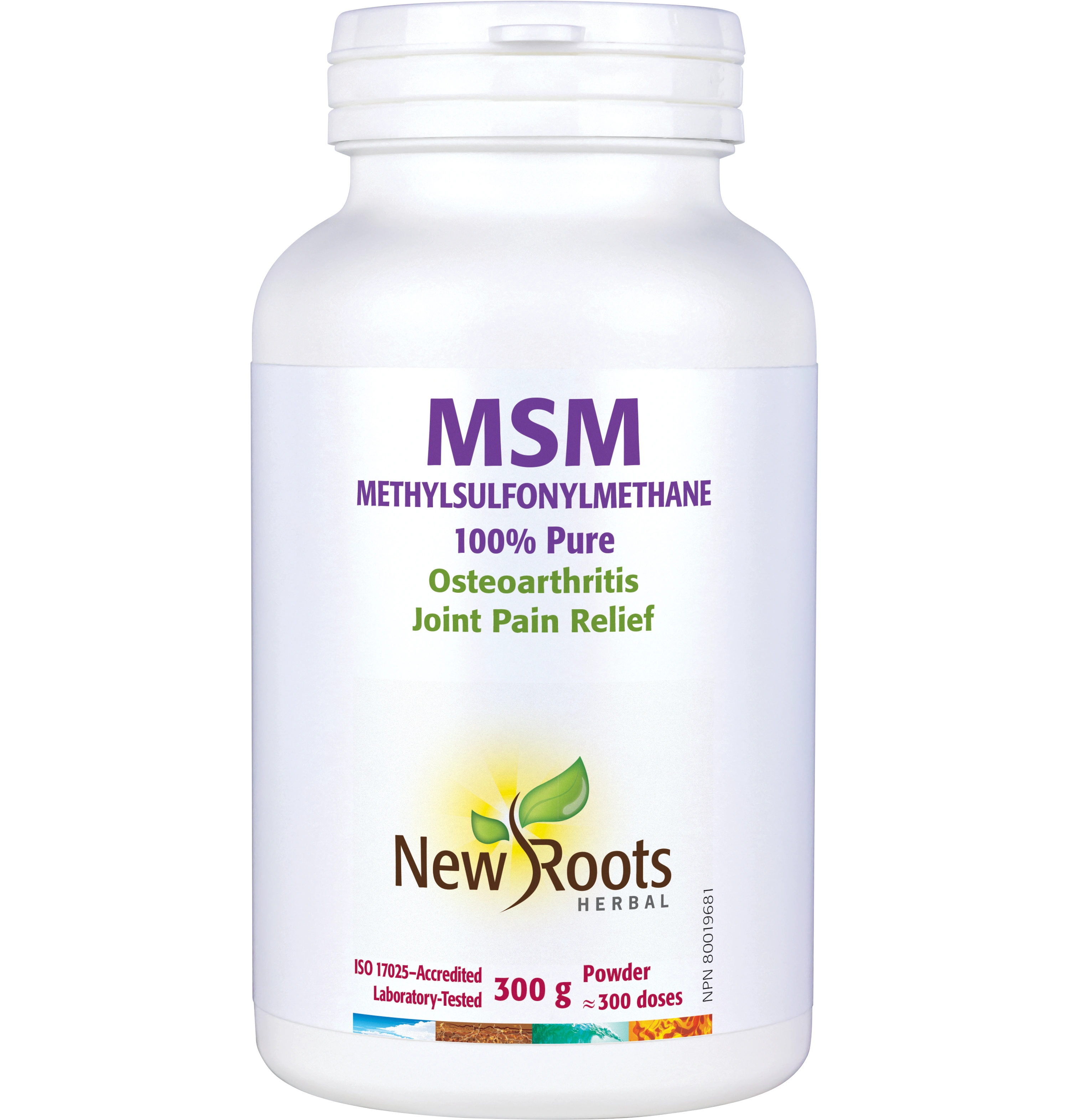 300 g of 100% pure, pharmaceutical-grade methylsulfonylmethane (MSM).